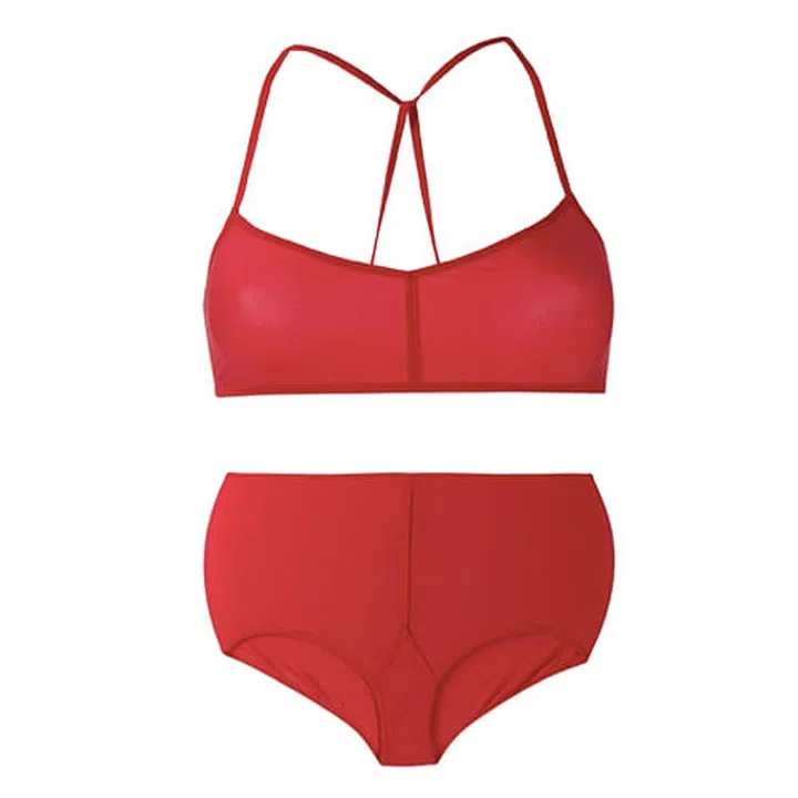 Featuring a comfortable stretch fit and made from smooth nylon-polyester blend, this red spaghetti strap bra and high-waisted briefs set will feel like a second skin. We love the sporty, seamless look this set has. Not to mention, high-waisted briefs (or it’s other less-than-flattering moniker – granny panties) can be one of the most comfortable undergarments of choice.