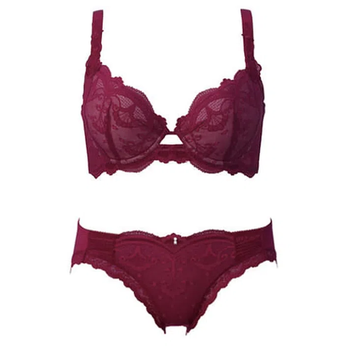 From local lingerie brand Perk by Kate, this burgundy bralette is designed with a scallop lace detailing and an underwire construction for added support. It also has removable paddings too, which guarantees more coverage. To add, the straps are convertible into three ways: straight spaghetti straps, halter or cross-back, so you can probably adjust it to fit any dress you’re planning to wear to bai nian. The coordinating bikini it comes with features a pretty and intricate lace design.