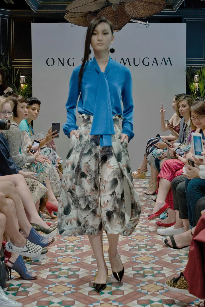 A discreet air of romantic reverie swept the space of Violet Oon Satay Bar and Grill’s dining floor last Thursday at the Ong Shunmugam Cruise 2018 show. Perhaps it manifested from the enchanting allure of the restaurant’s traditional Peranakan decor that was left deliberately untouched to match the label’s genteel old world charm.