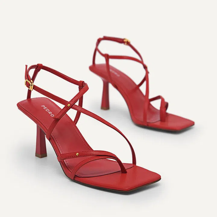 Strappy heels are a wardrobe must-have for their sexy while breathable style. We especially love this Pedro pair, that's constructed with an angular square toe and a 75mm stiletto heel.
