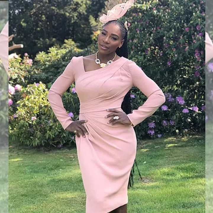 Serena Williams was pretty in pink, choosing a blush-coloured asymmetric bodycon dress from Versace with a small sculptural headpiece from and a statement necklace from Bulgari. The tennis superstar was thrilled to witness her dear friend (whom she has known since 2015) Meghan Markle’s nuptials and her look was decidedly modern, yet classic.
