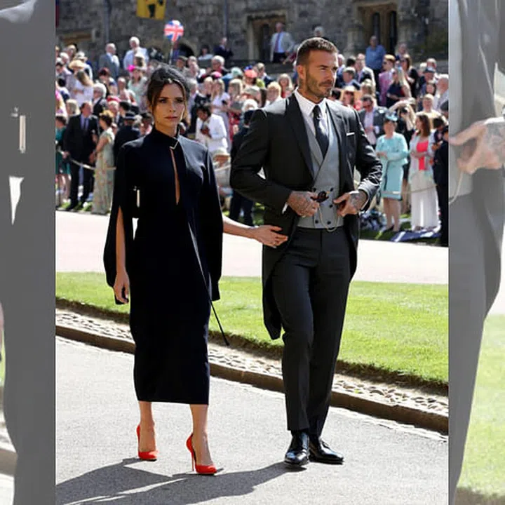 Victoria Beckham opted for navy blue, wearing a sleek high-neck, midi-length dress with fashion-forward slit sleeves. The fashion designer chose a matching pillbox hat and set her ensemble off with bright red heels. Though her choice of wearing a dark-coloured dress to the wedding may be a controversial choice which managed to raise a few eyebrows, Victoria Beckham looked undeniably chic and elegant even as she went off the beaten track. Stylish as ever, her beau David Beckham choose a navy tailcoat and grey trousers. Together, the power couple looked immaculate in their matching colours.