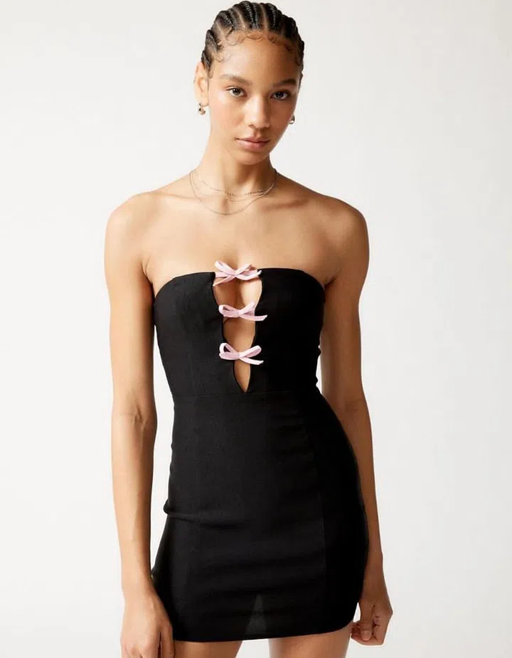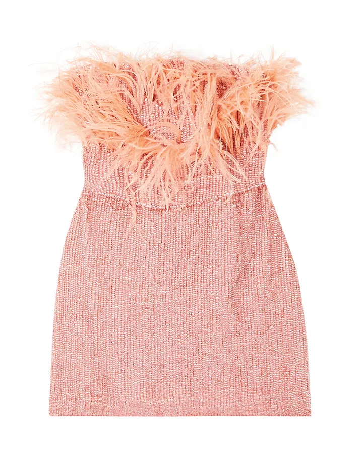 Short and sweet strapless styles are the order of the day at Versace and Caroline Herrera. Pro-tip: Matching accessories in pink are especially cute now that we are in the Barbiecore era.