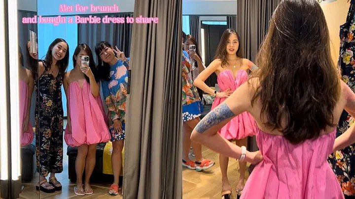 But trust Clara – always the one with a good eye for fashionable pieces – to have picked out a pretty pink piece. It was mid-July and Barbiecore was at its peak. Everyone was dressing up in bright pink to catch the Greta Gerwig movie. I was surprised the dress was on sale.