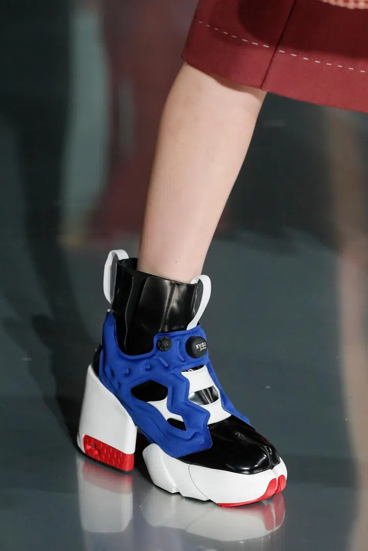 Stepping into the future with playful tech-inspired shapes and lines, oversized shoes oozing of futurism and robotic-like designs were seen clunking down the FW 20 runways. Maison Margiela platform ankle boots were fitted with contrasting sporty textures in primary colours such bright blue and red, all while referencing the anatomy of a chunky sneaker – we’re anticipating it to be a huge hit amongst sneakerheads upon its release.