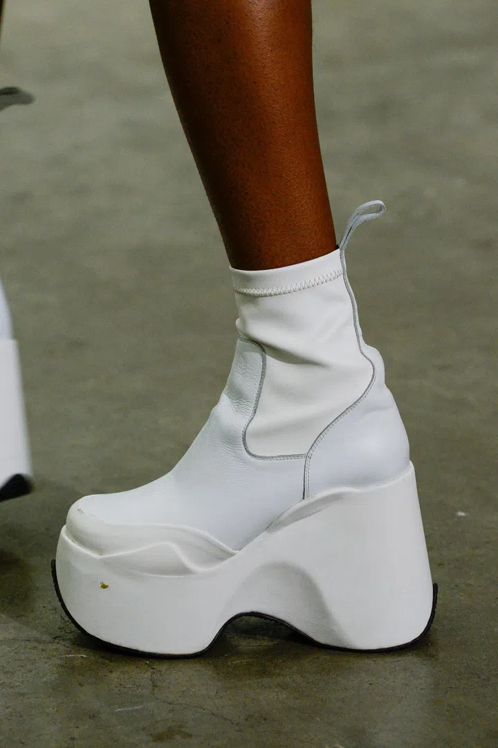 Marques Almeida gave a white leather sock boot a raised platform sole with an abstract shape.