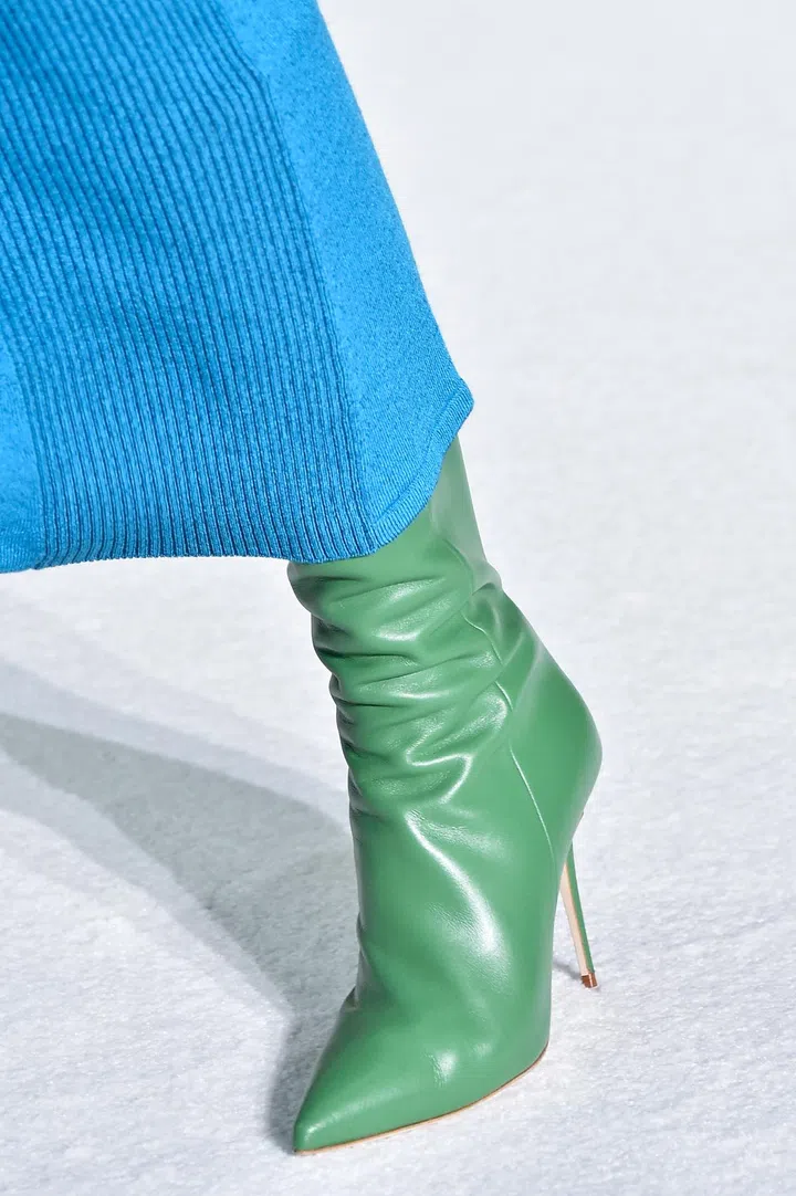 Presenting contemporary knee-high boots in every colour from blue, mustard brown and green, Carolina Herrera, Proenza Schouler and Victoria Beckham are flooding the luxury market with a slew of chic and covetable boots rendered in rainbow colours.