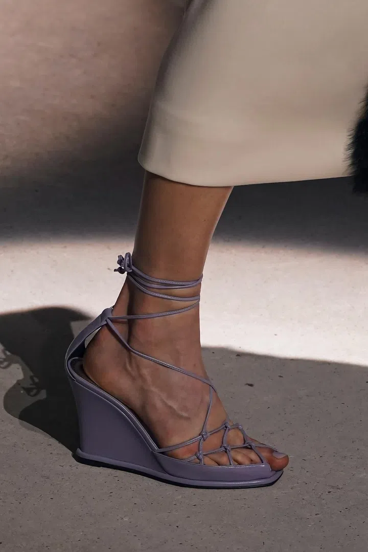 Say hello to the Naked Sandal 2.0. Now set upon a wedge heel, minimalist strappy sandals that experiment with a variety of intricate woven patterns and criss-crossing of straps are another trend to look out for this fall.
