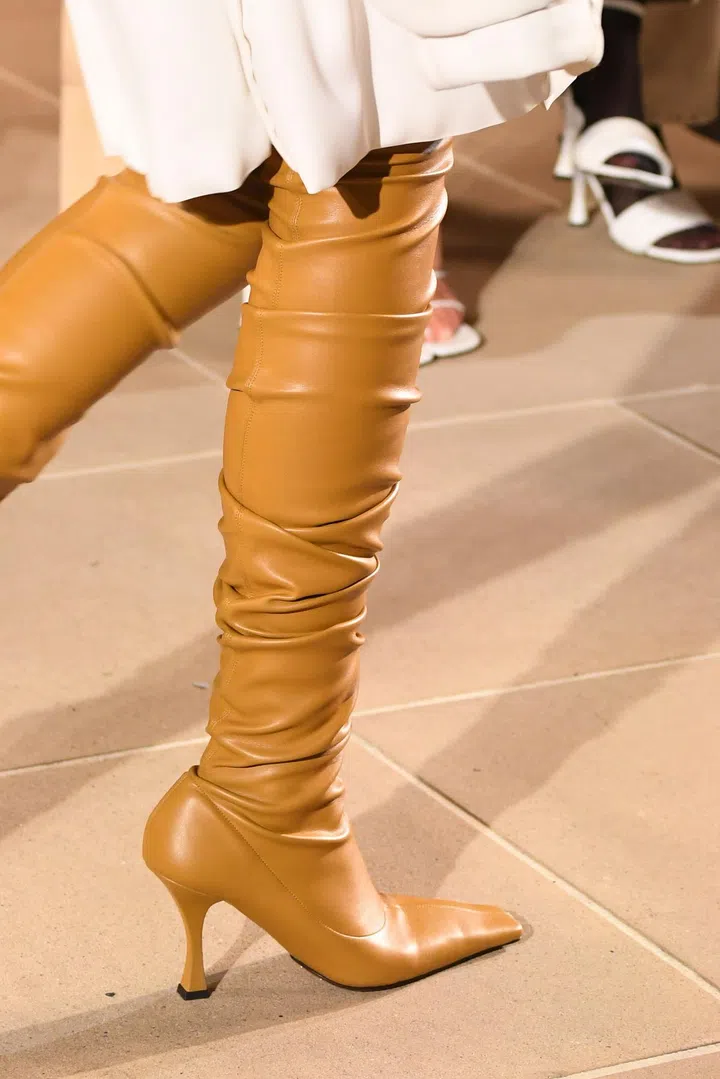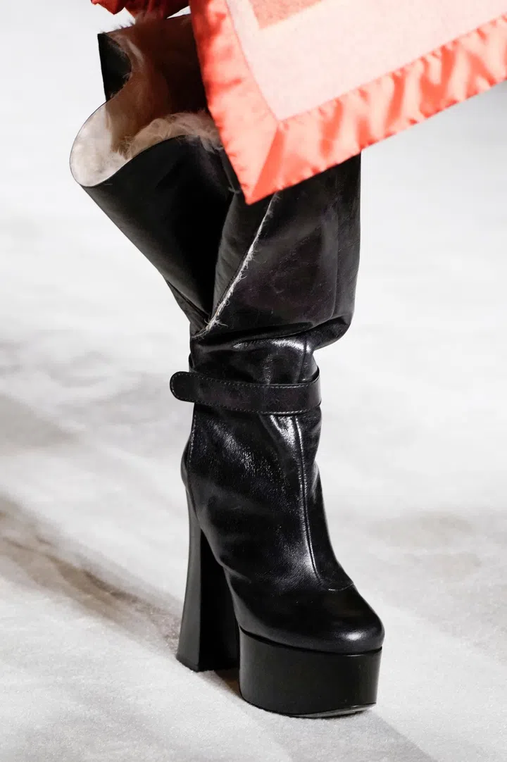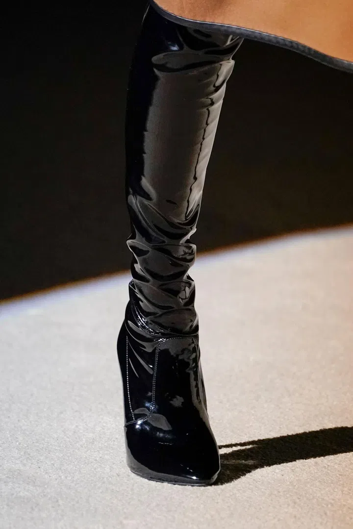 Glossy patent finishes were seen on boots all across the fall runways, at brands such as Longchamp, Saint Laurent, Cividini and more.