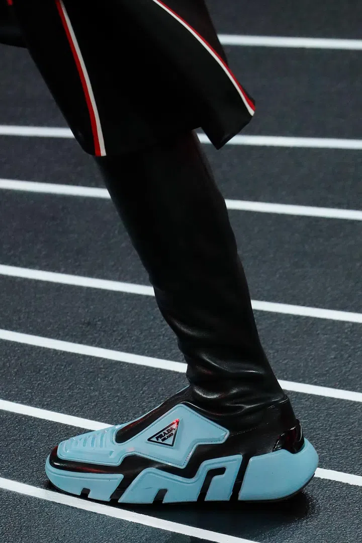 Prada had a collection of colourful sneakers etched with lines that bring to mind a microchip.