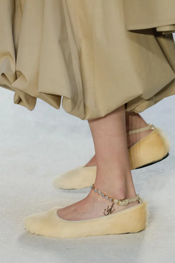 JW Anderson had prim and pretty ballet flats in soft buttercup yellow, decked in soft fluffy bristles of fur.