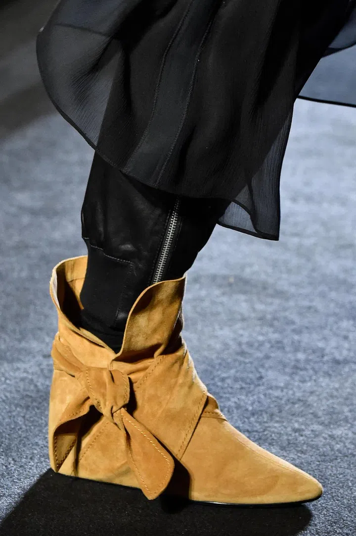 Rag & Bone had wide ribbon ties cinching the the ankles of its suede boots.