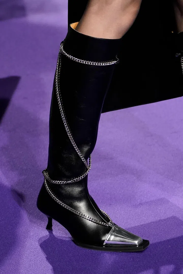 Longchamp had their boots embellished with silver metallic chains with big ball bearings across the toe.