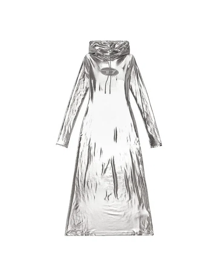 Look like you’re dripped in head-to-toe liquid metal in this hooded dress by Diesel.
