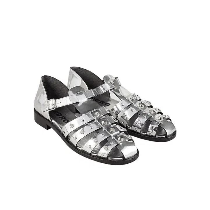 The jelly sandals we all love wearing as children are all grown up in metallic leather and studs.