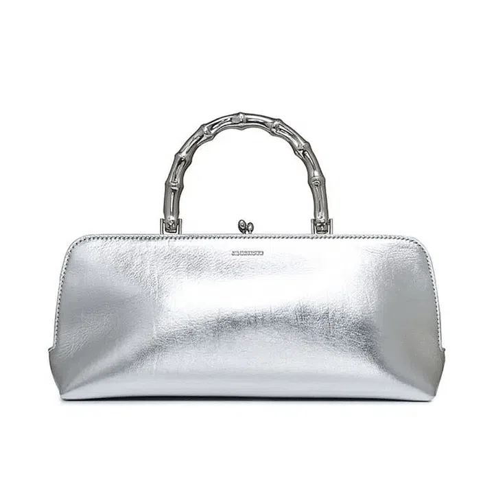 This elegant Goji bag, which comes with a bamboo handle, looks like it has been dipped in a vat of liquid metal.