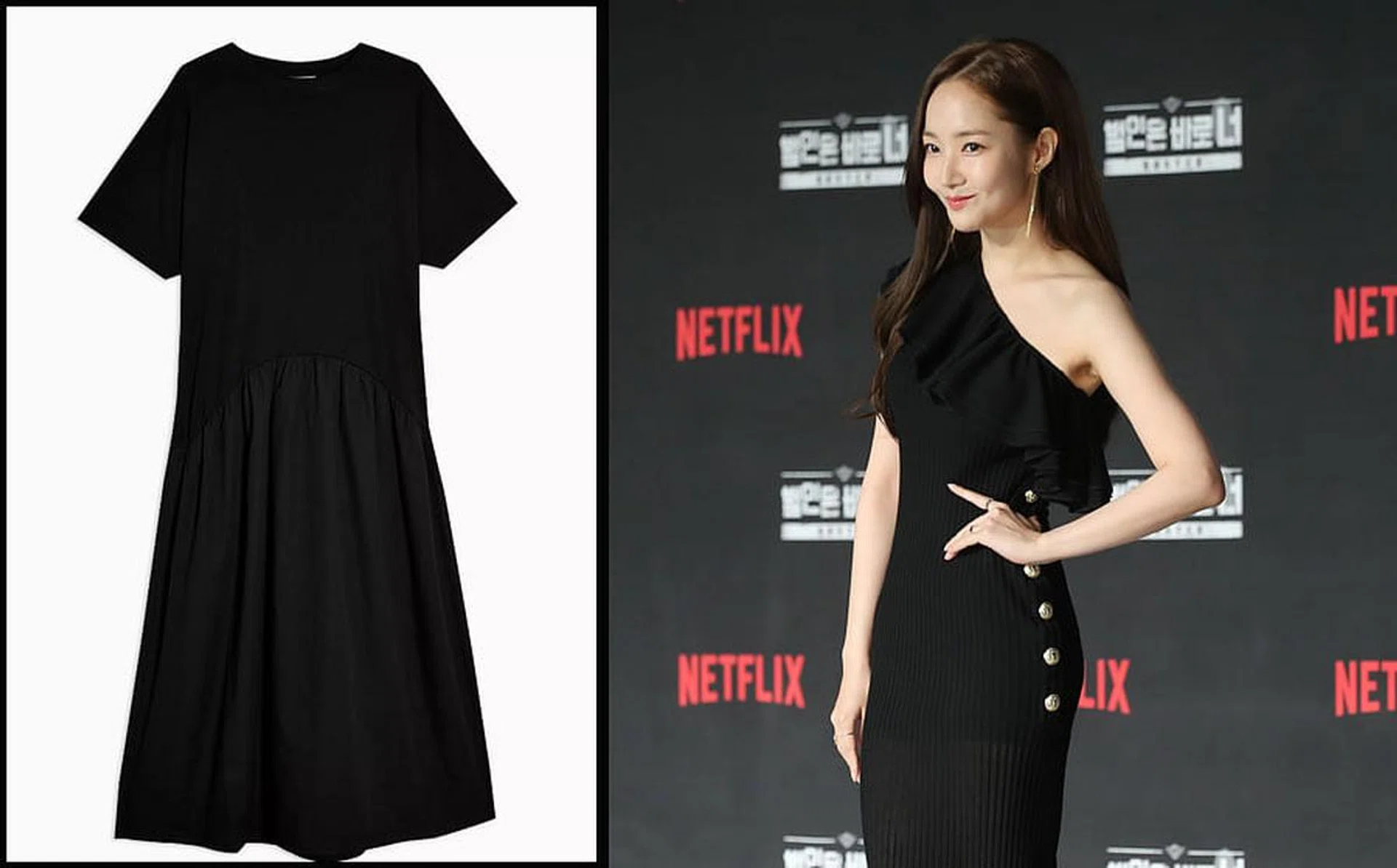 This might look like an ordinary LBD (here are some other options of Not-so-basic LBDs) but don’t be fooled by its plain appearance. It is actually made with mixed materials where the top and skirt sections are of different cotton textures. Jazz up the dress with a cuff bracelet and statement hoops.