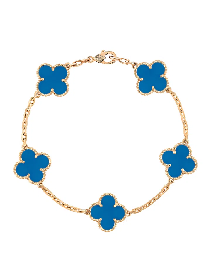 Lucky In Life: Vintage Alhambra 5 motifs yellow gold bracelet with agate, $6,350