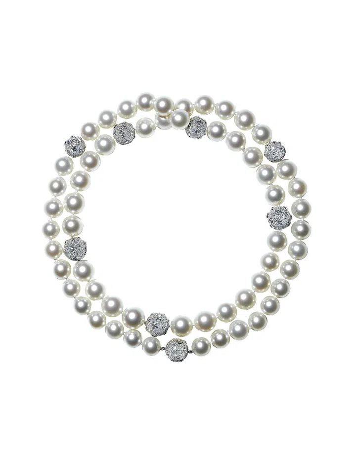 Modern-Day Diva: Opera-length South Sea white cultured pearl necklace with diamond beads in platinum, Tiffany & Co.
