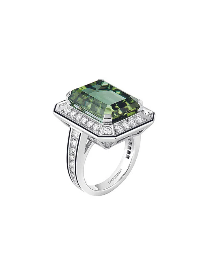 Bring On The Bling: Vendome Lisere engagement ring with green tou9rmaline, Boucheron