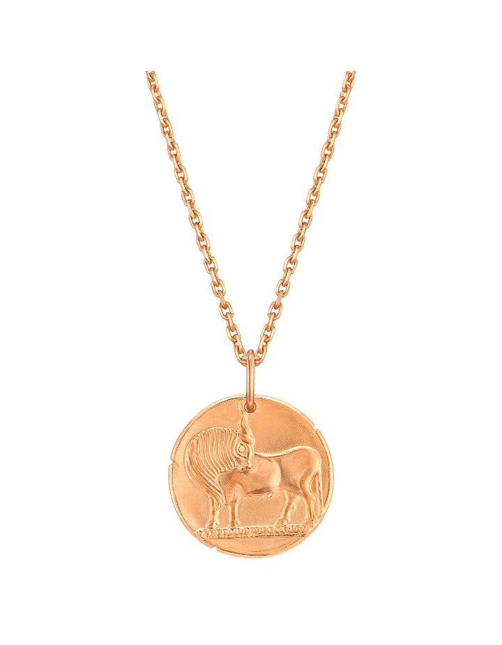 Written In The Stars: Zodiaque Tauri (Taurus) yellow gold medal, $3,350, Van Cleef & Arpels