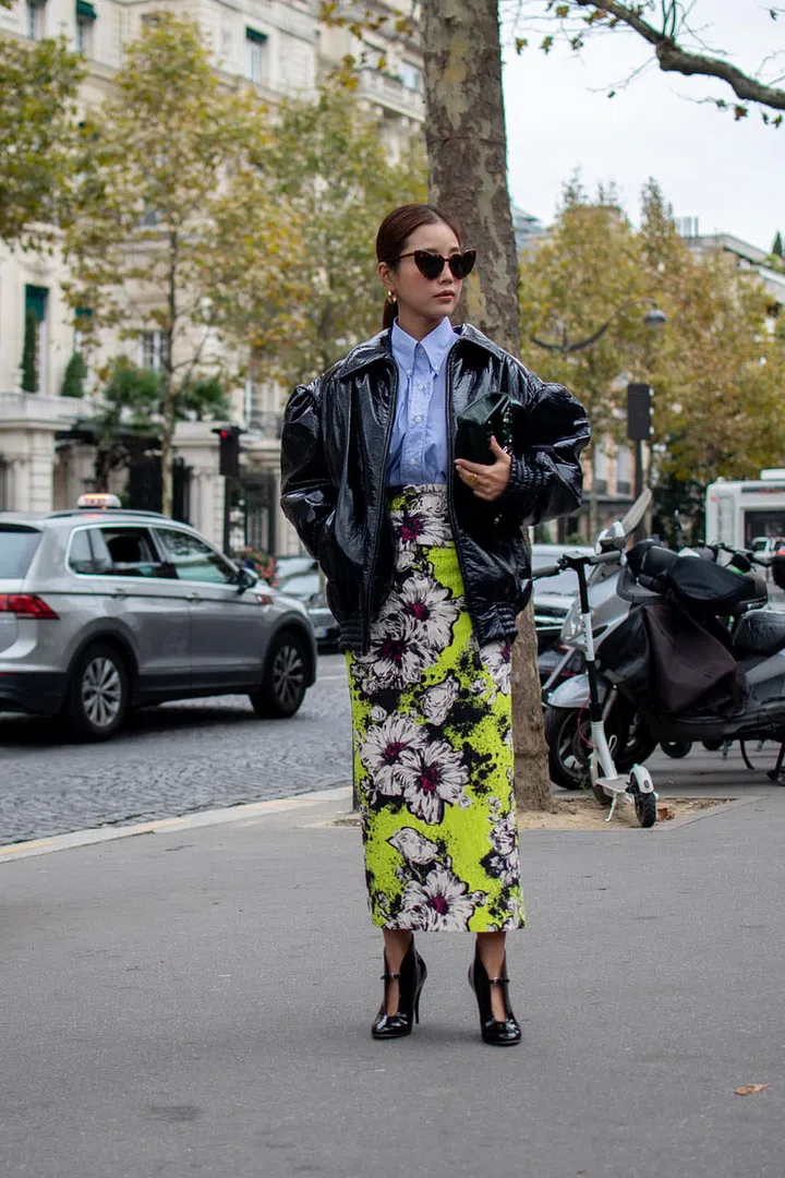 To give you styling tips and inspiration for your future purchases, we’ve rounded up seven of our favourite street style looks that featured amazing footwear outside of Miu Miu at Paris Fashion Week.