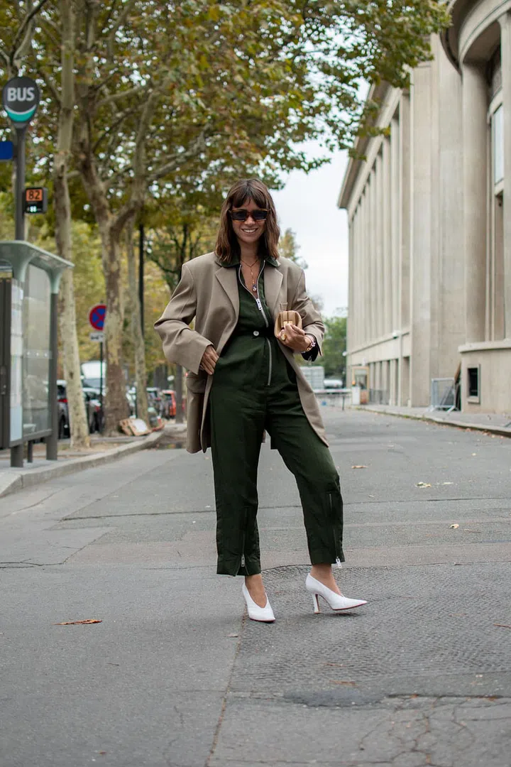 A way to create a cohesive look is to match parts of the outfit, like the jacket, handbag and shoes in this photo.