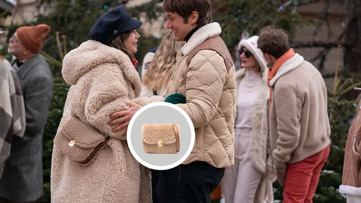If you stan Emily's complicated relationship with chef Gabriel, then you can definitely expect some sweet and private moments between the two in the second instalment. But in this case, if there's something else we're falling head over heels for, it'd have to be Emily's must-have bags. In this scene where Emily and Gabriel seek shelter from the rain, Emily's carrying a Roger Vivier Mini Bag in Suede, while Gabriel is carrying the iconic Longchamp Le Pliage Filet Top Handle Bag ($117).
