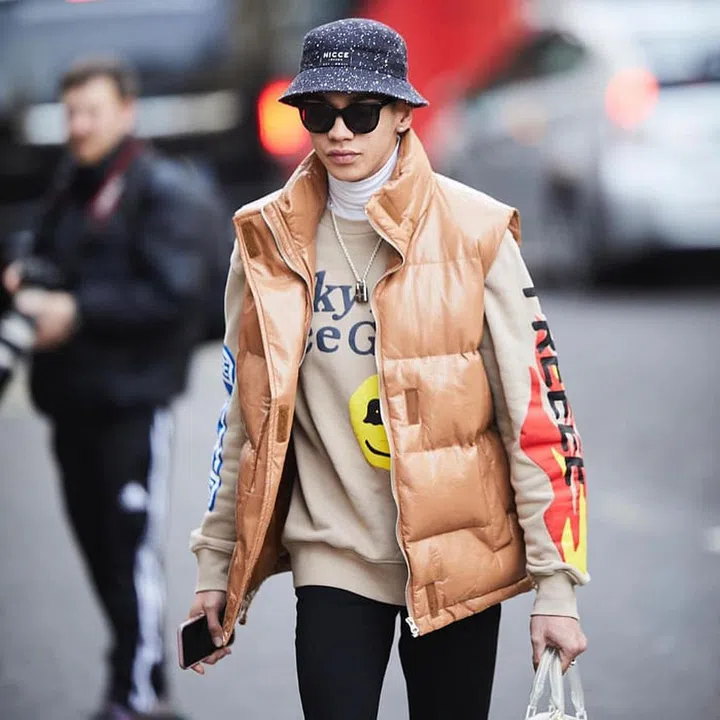 Style tip: Puffer jackets remain a fashion favourite among the stylish set. Bucket hat optional.