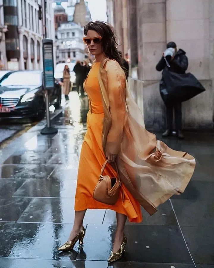 Style tip: Green and oranges are analogous best friends on the colour wheel.