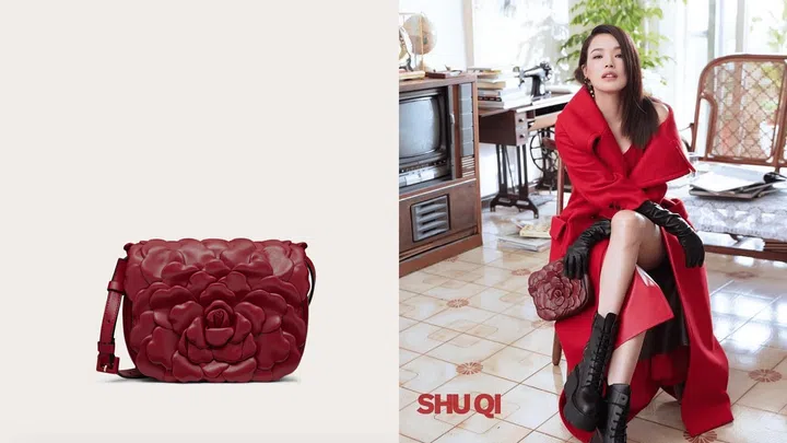 Shu Qi carrying Valentino Rose Edition Small Atelier bag, US$2,755 (SG$3,716)