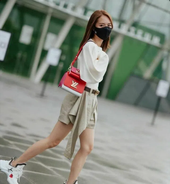 Dressed to attend Louis Vuitton's Spring/Summer 2021 spin-off show in Singapore, Chantalle wore earthy tones that playfully accented the bright-coloured Twist and Twisty bags.