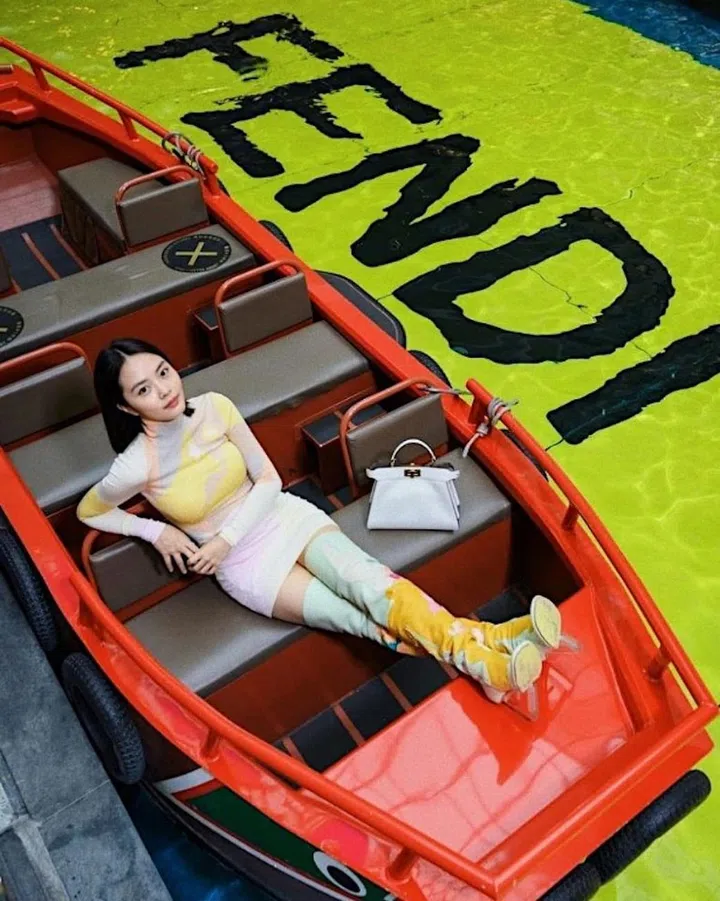 The Fendi Peekaboo bag is a favourite among female celebrities, including Chantalle. Seen here at the opening of a new Fendi store at Marina Bay Sands, Chantalle sports the Peekaboo bag with a romantic pastel skirt and matching thigh-high boots.
