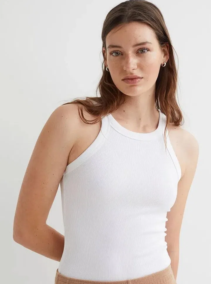 A simple and versatile white tank top is a must-have in anybody's wardrobe. If you want to skip wearing a bra underneath, get Uniqlo's AIRism ribbed vest that comes with an inbuilt bra.