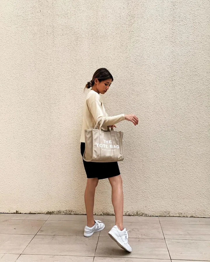 My go-to is The Mini Tote Bag from Marc Jacobs. It’s practical yet chic at the same time, and the neutral beige hue goes so well with many outfits. The best part? It has so many compartments – a lifesaver!