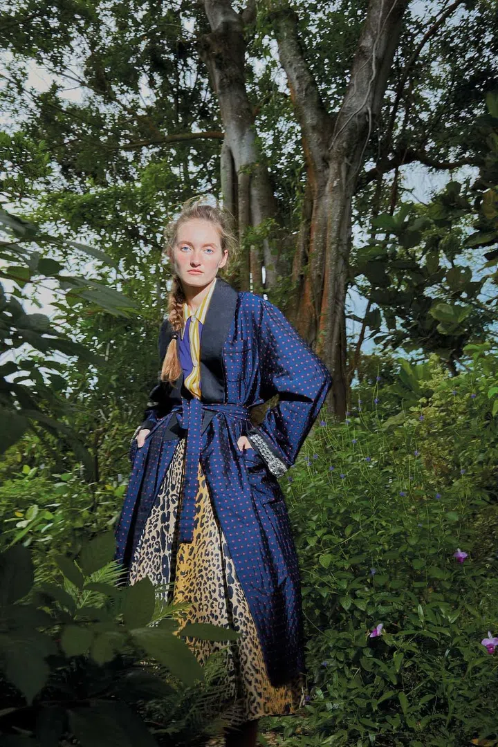 Silk jersey cape, $4,250, and silk dress, $8,100, Louis Vuitton
