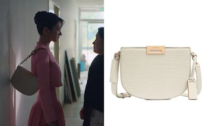 This creamy half-moon design is the Claire bag from Korean label Joy Gryson, which also marks the brand's second appearance in the series. This bag has a classy, versatile silhouette and the style very on-trend at the moment (think of Fendi Baguette).