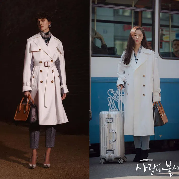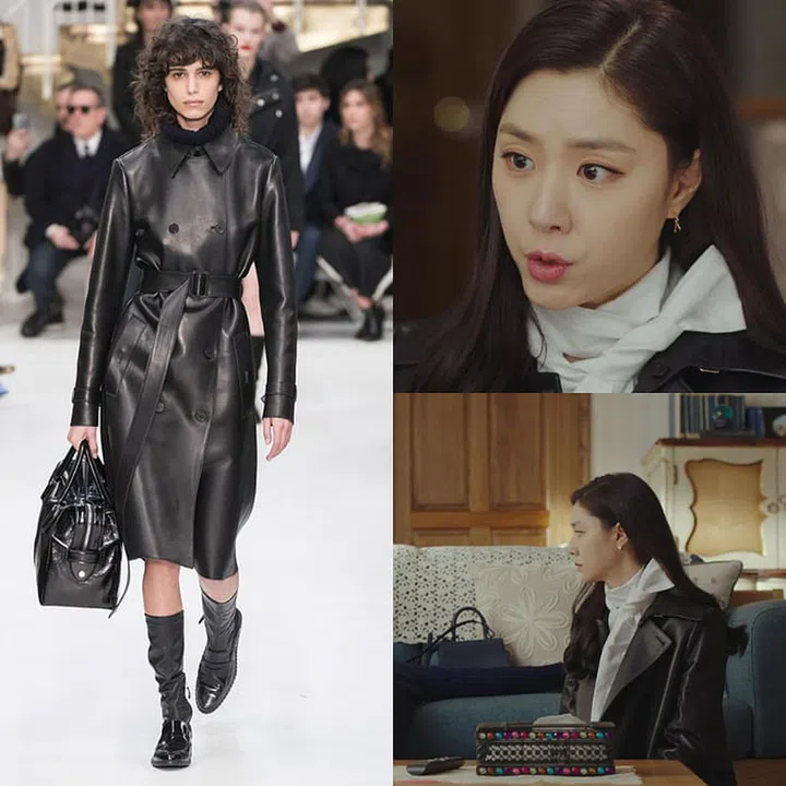 Though Seo had a tough exterior in the show, it actually concealed a romantic heart. To further drive home the independent woman image, she often wore tailored suits or cool leather jackets, such as this trench coat from Tod's 2019 Fall/Winter series.