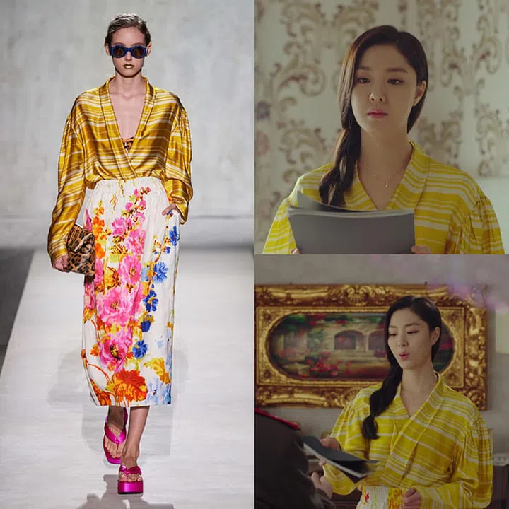 Seo wore an impressive repertoire of international luxury labels on the show. This striking ensemble was from Dries Van Noten 2020 Spring/Summer series, which she wore before it even hit the shelves.