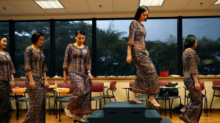 The reason why SQ girls look so good in their uniforms is because each one is tailor made. There is no standard sizing for the sarong kebaya as designer Pierre Balmain had insisted on a tailored fit to suit the feminine form.