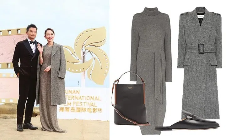 Looking polished in a speckled grey dress that swept the floor and a matching grey coat, Fann was absolutely ravishing as she posed next to husband Christopher Lee at the 2018 Hainan International Film Festival. Cop her look for the office with this belted midi dress and a textured herringbone coat. Haul your favourite practical carryall, and slip into a pair of mules for a put together ensemble.