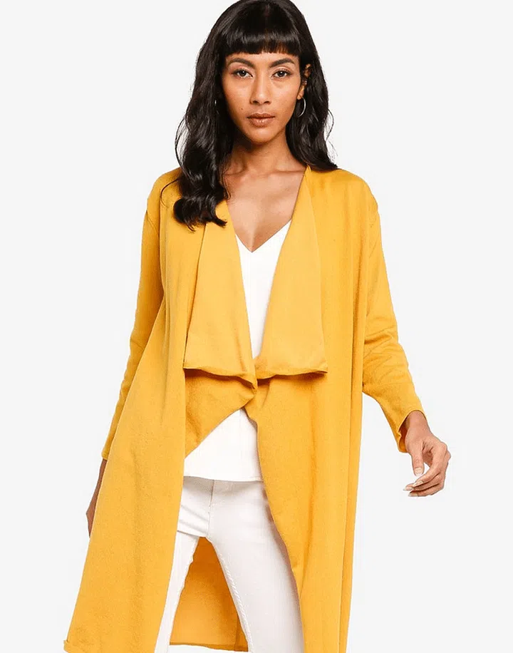 Adding a splash of bold colour to your outfit is a sure-way to turn heads. Fann's bright yellow cardigan with interesting texture makes her white T-shirt more interesting and, overall makes her look super fresh. How fann-tastic!