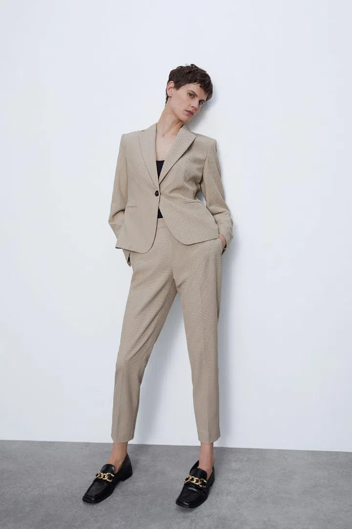We are avid fans of the tried-and-true suit. Not only is it great for work, but you can also break up the pieces and rotate them into both your professional and weekend wardrobe. This tailored Zara number actually has small polka dot details that add slight visual interest so that it doesn’t look boring nor flat. Finish with a pair of nude pumps or mules.