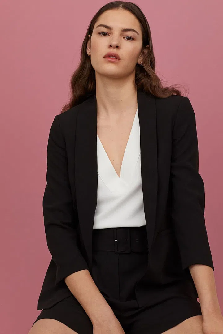 The classic black blazer is as timeless and unassuming as it gets. You have the liberty to style with whatever you want underneath – from a sexy lacy bralette for a date, a simple camisole top to a spiffy shirt for work. For the bottoms, you can go structured with a pencil skirt or tailored trousers for work, or opt for flowy silhouettes such as a pleated skirt or wide-legged denim jeans.