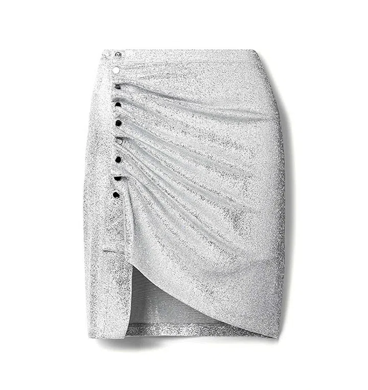 Pick up a mini skirt if you're looking to show off your gams. Joanne Peh matched a sparkly silver mini skirt with gold sandals to create an opulent look.