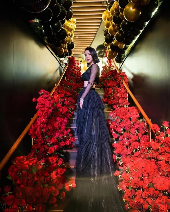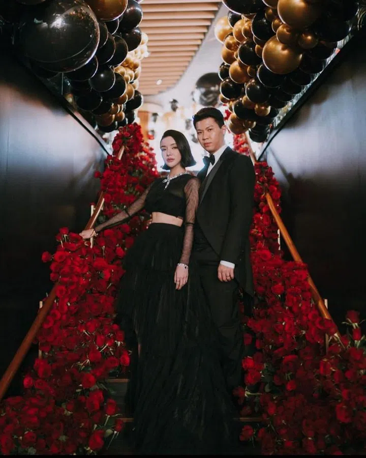 On February 25, Kim Lim and her husband hosted a pre-wedding dinner. Similarly, she wore a two-piece style dress, this time in black from The Ivory Bridal. The outfit not only makes her look taller, but also accentuates her small waist.