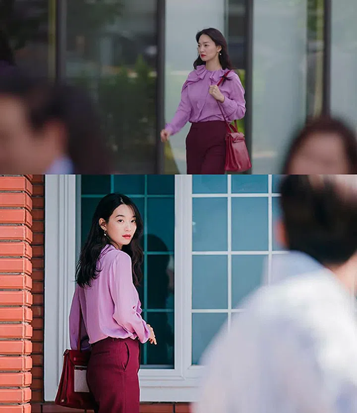 Shin Min-a was nothing short of a fashion chameleon in the show with many outfit changes. We even wondered if she hid a stylist in her wardrobe. Among the looks she wore were this 2015 Re-Edition silk shirt and wool trousers from Alessandro Michele's first Gucci collection. Not only did the colour and silhouette flatter Shin's body and elegance, but the matching Hèrmes Herbag Zip 31 leather handbag also added to her femininity.