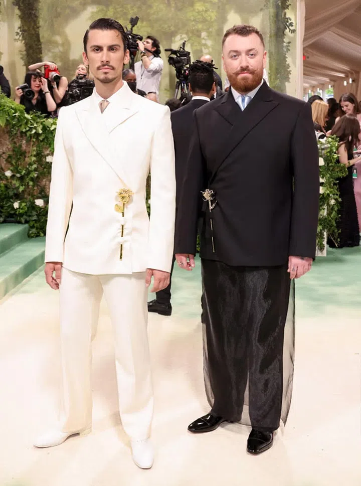 Like yin and yang, Sam Smith and Christian Cowan presented a perfect union in no other than Cowan’s own label’s sleek tuxedo, with Smith having a sheer overlay over his trousers. The English rose (real ones at that) was chosen as both a tribute to their British roots, and the theme of ‘The Garden Of Time’.
