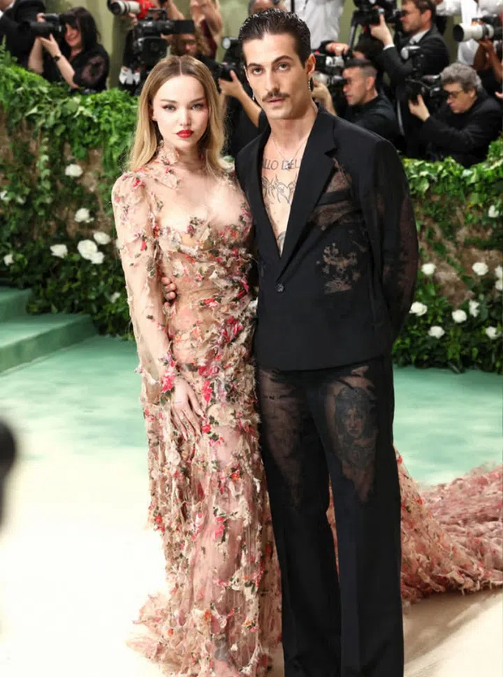 First romantically linked in September 2023, Dove Cameron and Damiano David are a Diesel couple who only have eyes for each other. While the ‘Boyfriend’ singer slayed in a distressed floral gown with epic sleeves, David’s sheer paneled black suit looked to give a peek to his many tattoos.