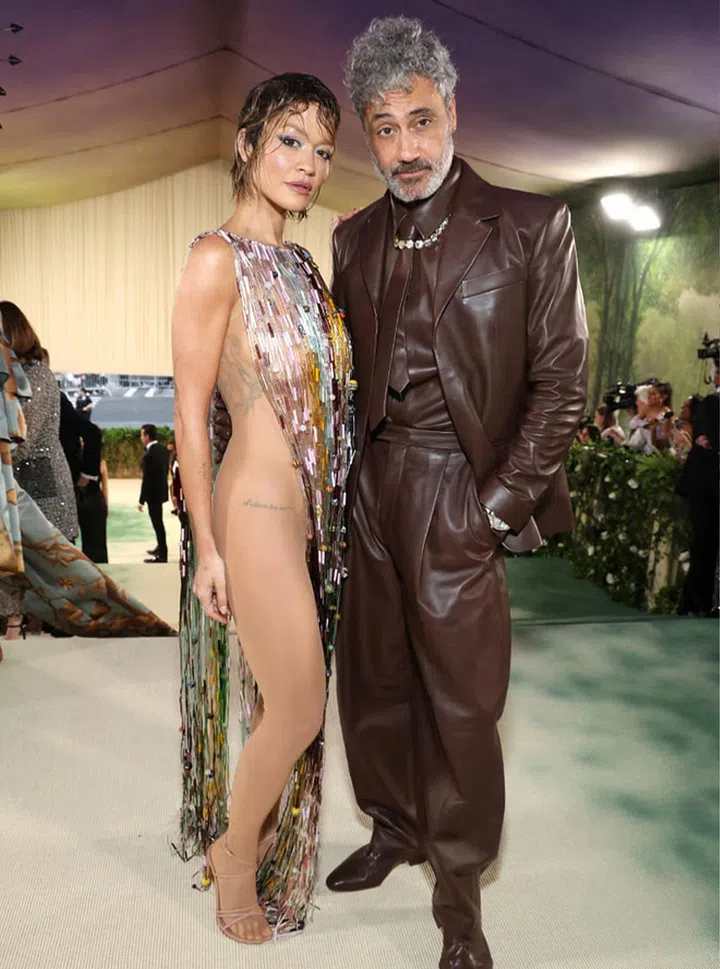 Married in 2022, Rita Ora and Taika Waititi complemented each other’s look perfectly in tones and textures of brown. Clad in a Tom Ford look of a mesh bodysuit with beads—some of which are, according to Ora, from the first and second century BC—the British singer definitely served, while Waititi stepped out in a top-to-toe brown leather look by Marni, complete with matching tie and gloves.